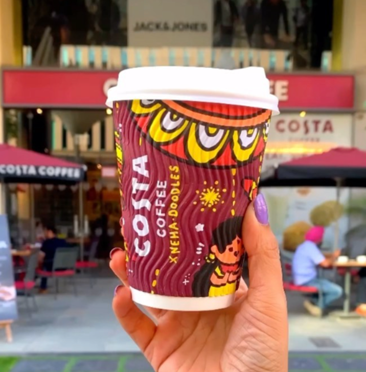 Meet Neha Doodles – an illustrator whose vibrant and relatable artwork brings animated storytelling from Indian households to life. With her fun characters and passionate creations, Neha has collaborated with some of the most admired brands and taken on a wide range of creative projects. Her Diwali-inspired coffee-cup doodles for Costa Coffee, their first-ever influencer collaboration, were a huge hit, showcasing her unique talent.